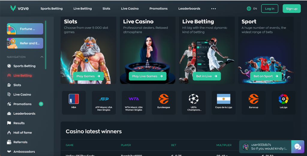 9. Vave – Modern Anonymous Crypto Casino With Sports