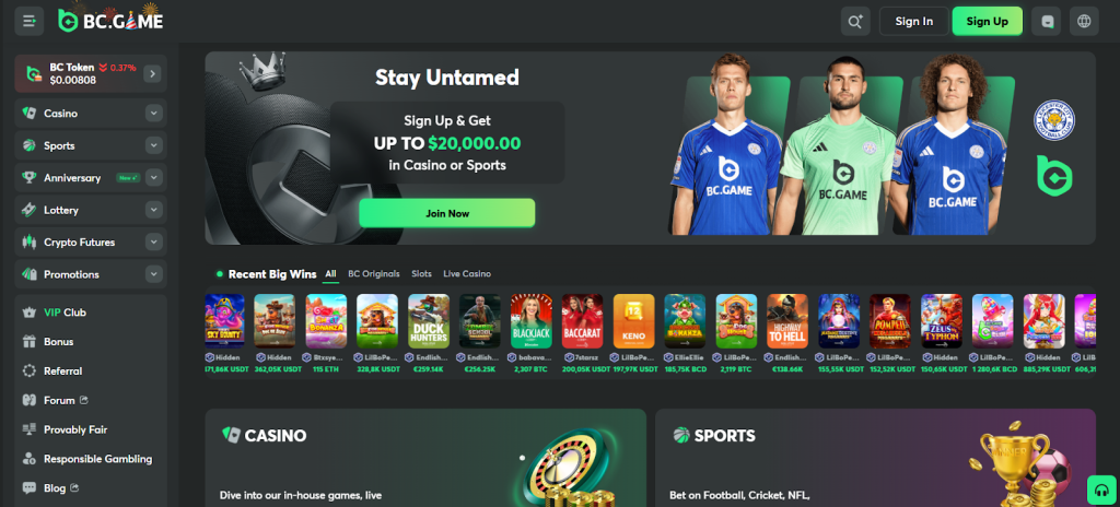 The platform features a comprehensive sportsbook covering 120+ sports and esports. The $BC native token provides additional rewards. Multiple industry awards confirm BC.Game’s reputation as a top-tier crypto casino.