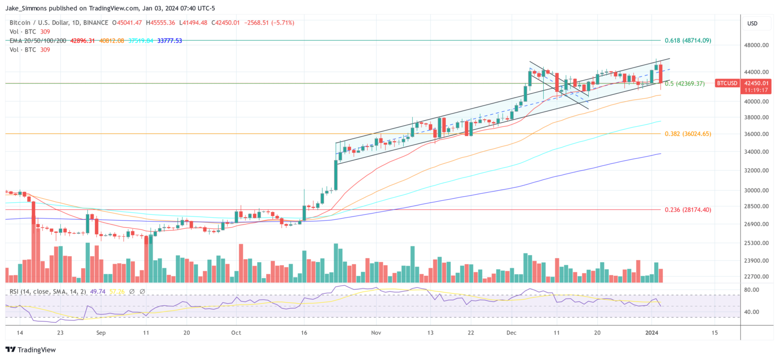 At press time, BTC had already recovered a few of its losses and was buying and selling at $42,450. Because of this the value has as soon as once more returned to the upward pattern channel within the 1-day chart that was established in mid-October final 12 months.