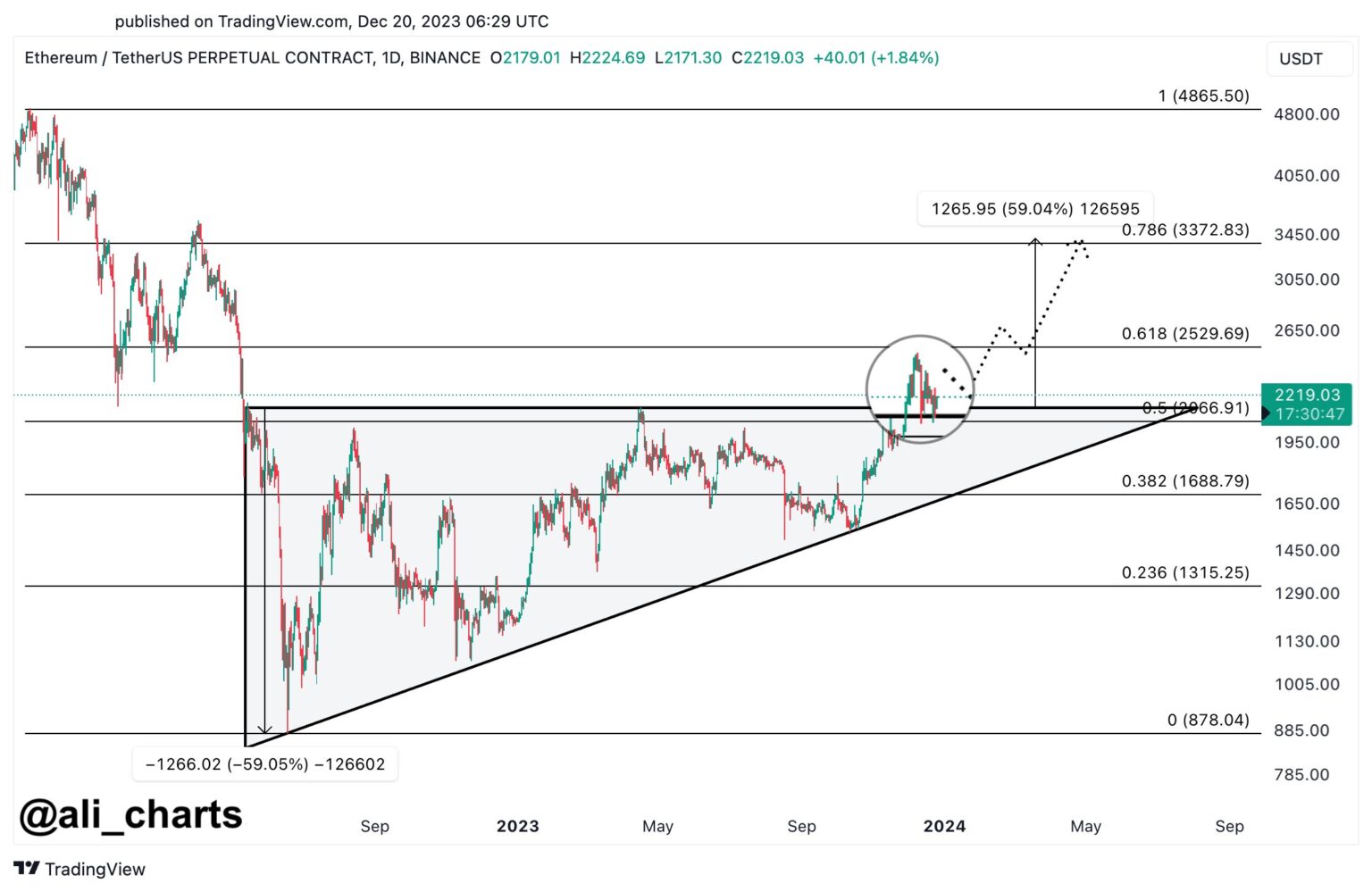 Now, right here is the chart shared by Ali that shows how the worth is interacting with an ascending triangle proper now: